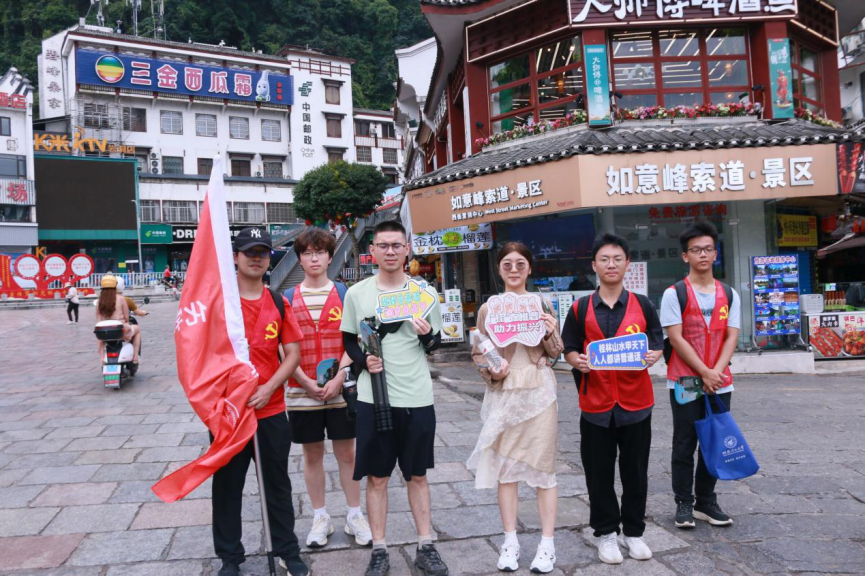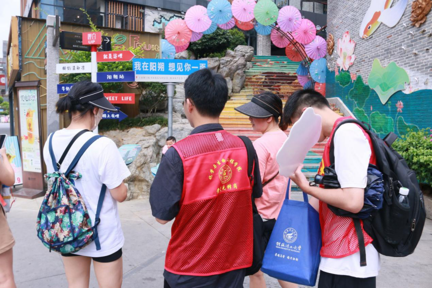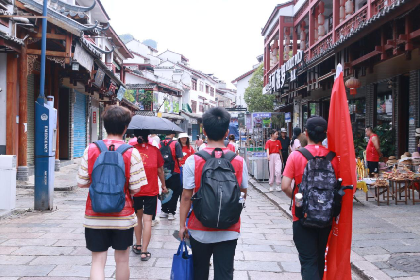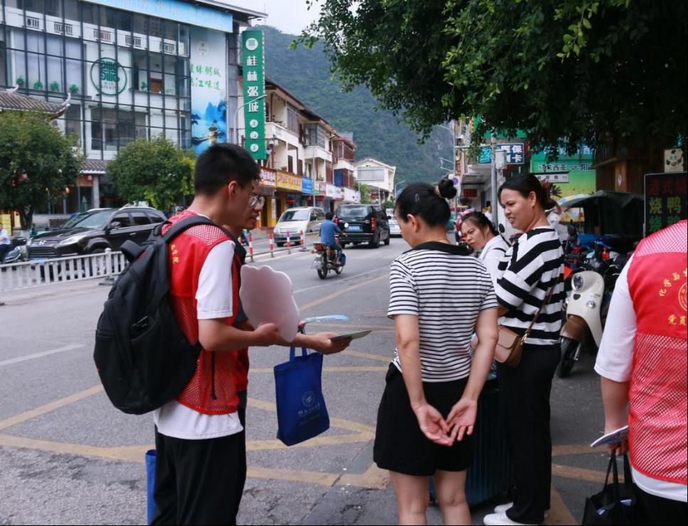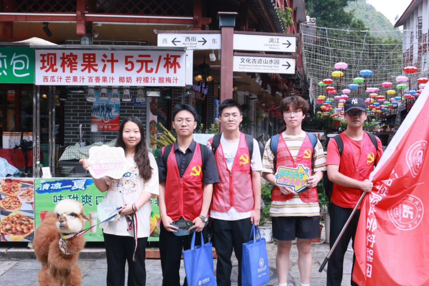 中国青年网桂林7月12日电(通讯员 陈红联)为推动教育和语言文字事业高质量发展,加大民族地区、农村地区国家通用语言文字推广力度,全面提高国家通用语言文字普及程度和质量,并深入调研国家重点旅游城市及景区的普通话普及情况,必赢bwin线路检测弘扬中华汉语文化社会实践团于7月11日在桂林阳朔西街及周围景区开展普通话的推广宣传行动。实践团队成员通过街道走访、分发推普物资、对当地居民或游客进行访谈等方式开展普通话的推广宣传活动。团队成员于此旅游高峰期开展推普宣