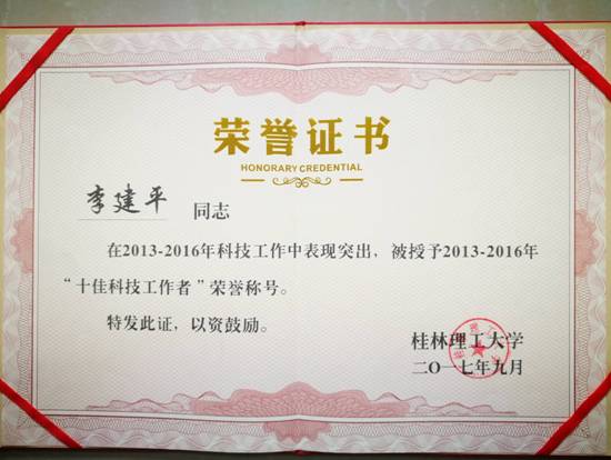 李建平教授被授予“十佳科技工作者”荣誉称号