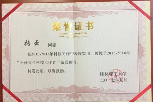 张云教授被授予“十佳青年科技工作者”荣誉称号